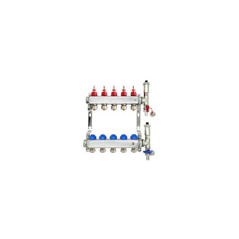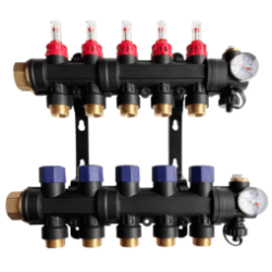 Le collecteur pour plancher chauffant est conçu pour assurer une répartition homogène du fluide (eau, solution de glycol)